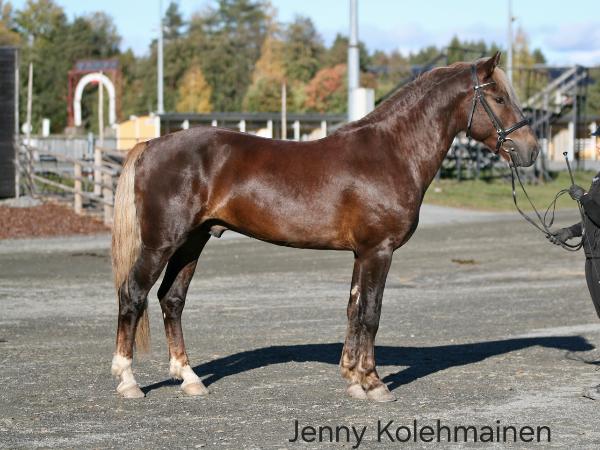 Jouhet: Tuntomerkit: liinahtavat jouhet Muu: Oej: Otj: vuohissukka, valkokavio Pää: tähdenaihe Polttomerkki: Runko: Vej: Vtj: vuohisukka, valkokavio